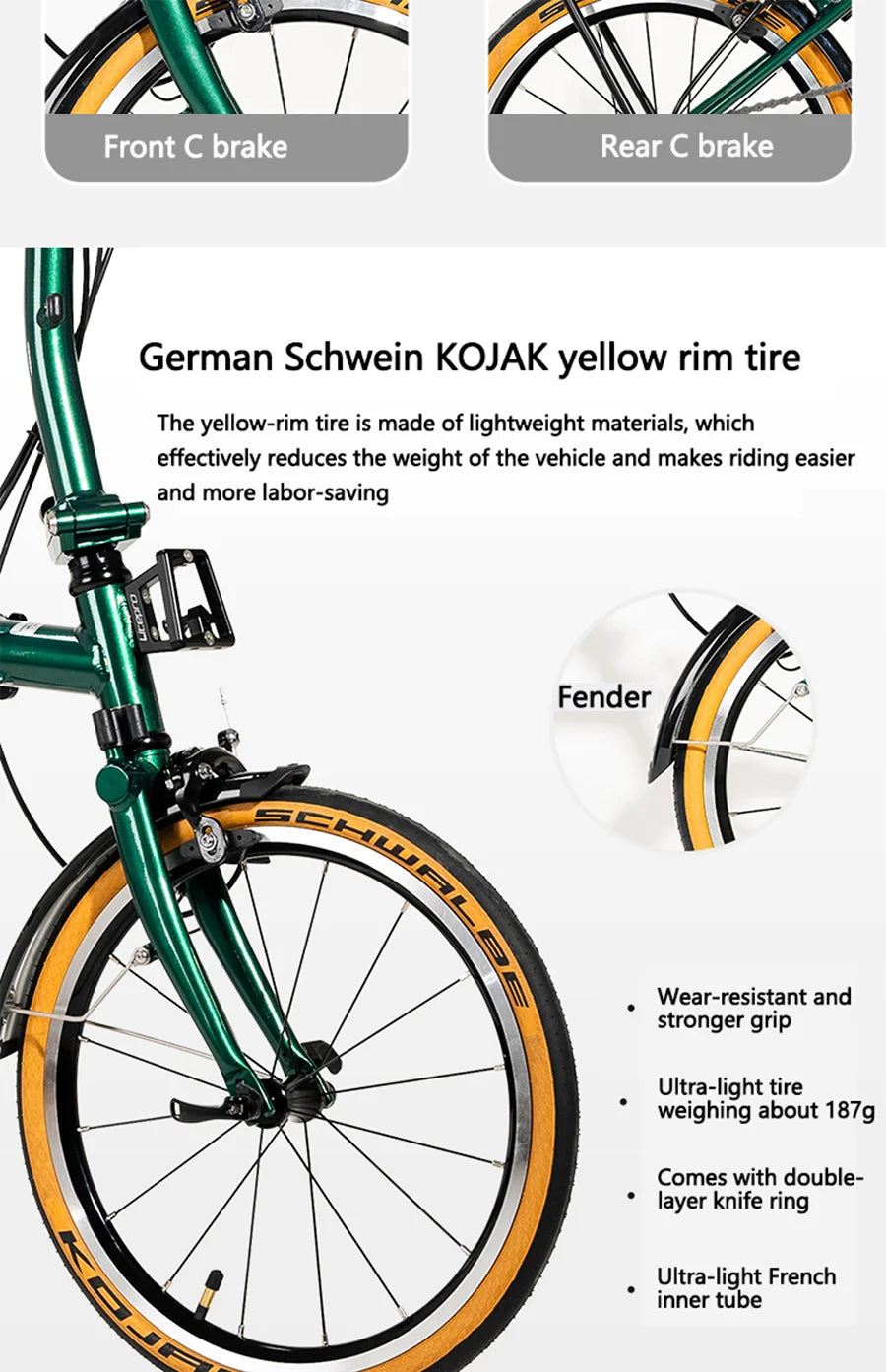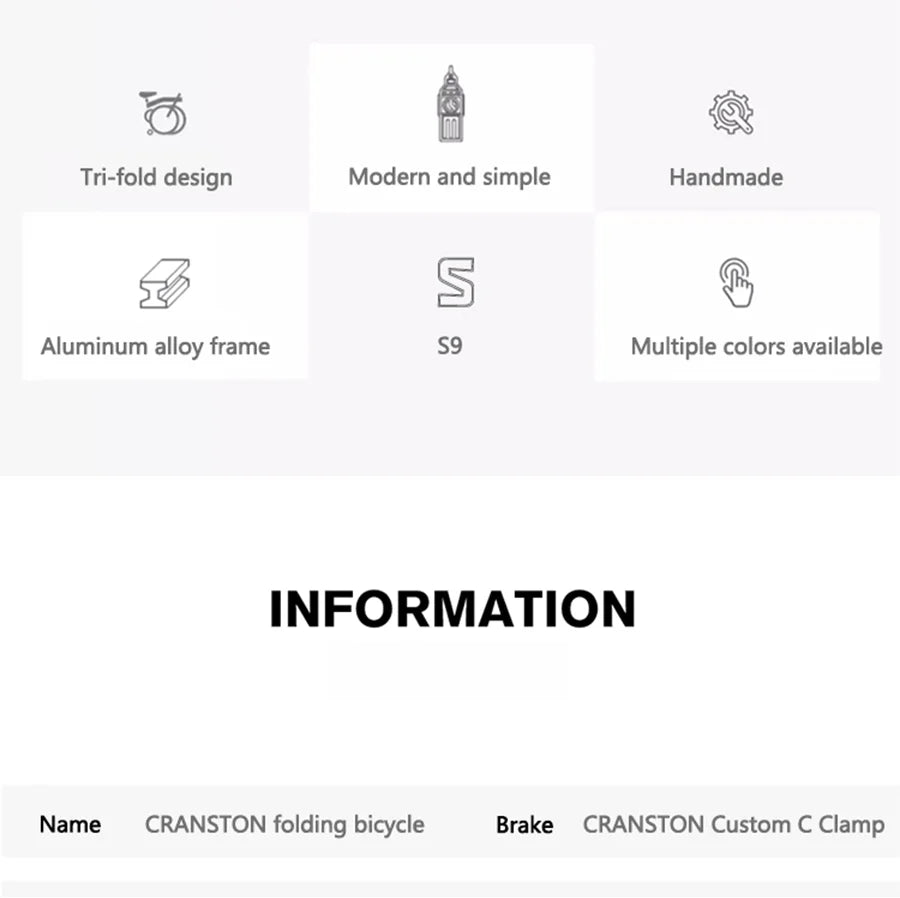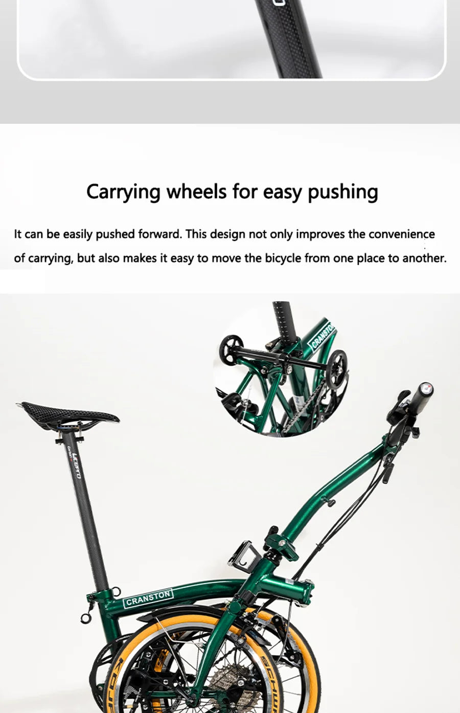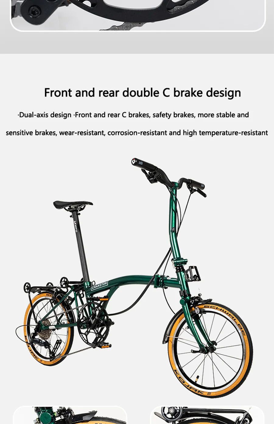 CRANSTON 16 inch 9-speed Aluminium Alloy Folding Bike with C- Brake Lightweight Portable Adult Folding Bicycle