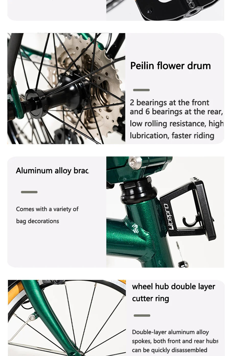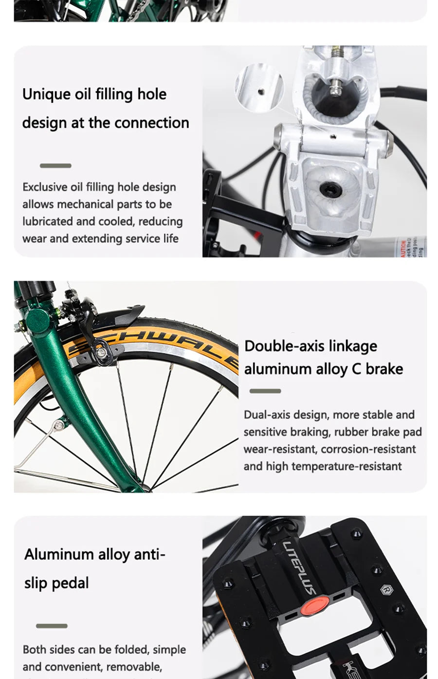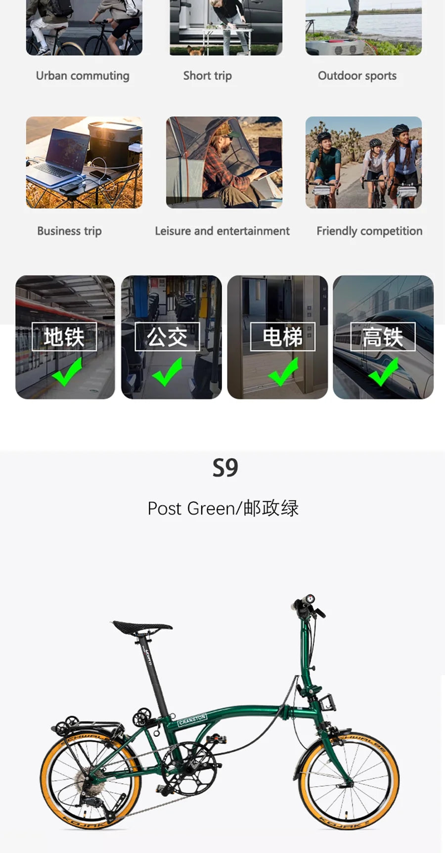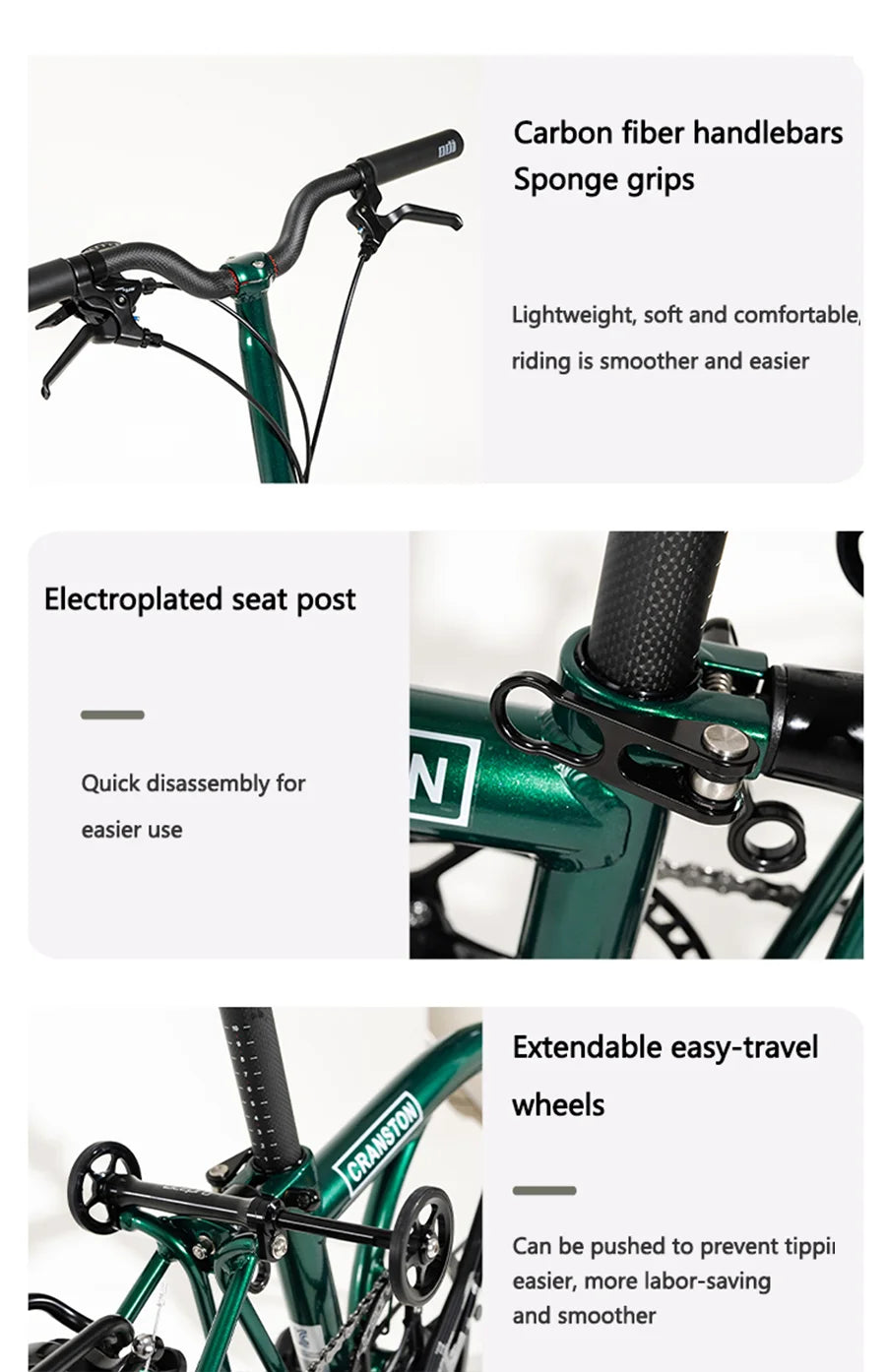 CRANSTON 16 inch 9-speed Aluminium Alloy Folding Bike with C- Brake Lightweight Portable Adult Folding Bicycle