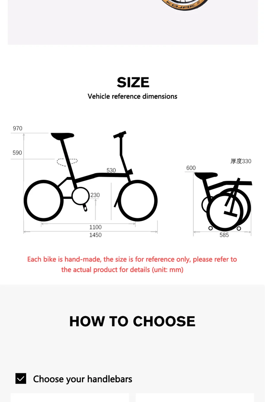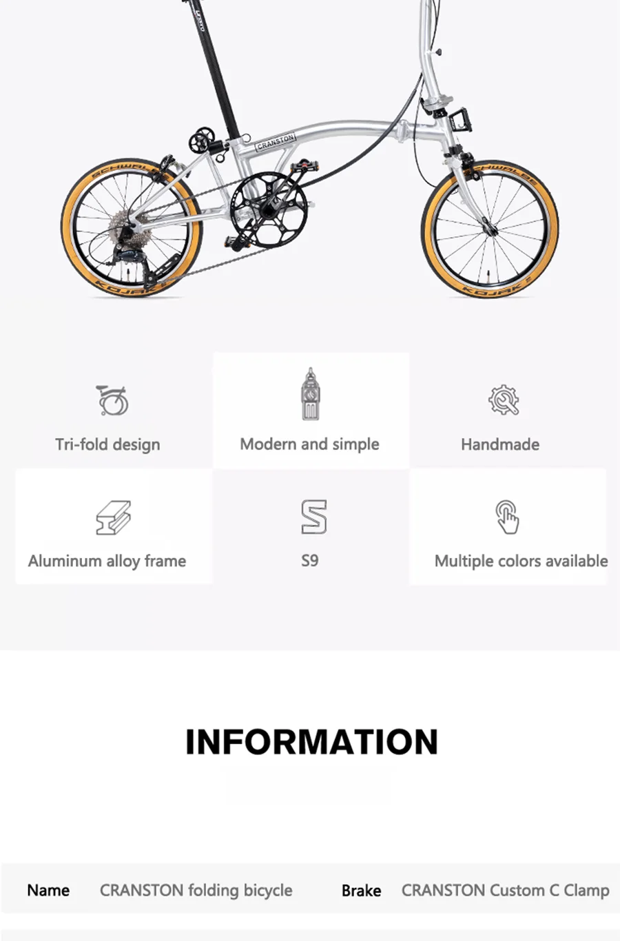 CRANSTON 16 Inch 9-Speed Folding Bicycle S9 Aluminum Alloy C-Brake Three Fold Retro Commuting Folding Bike for Adults Portable