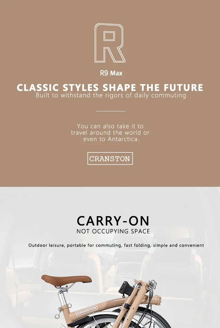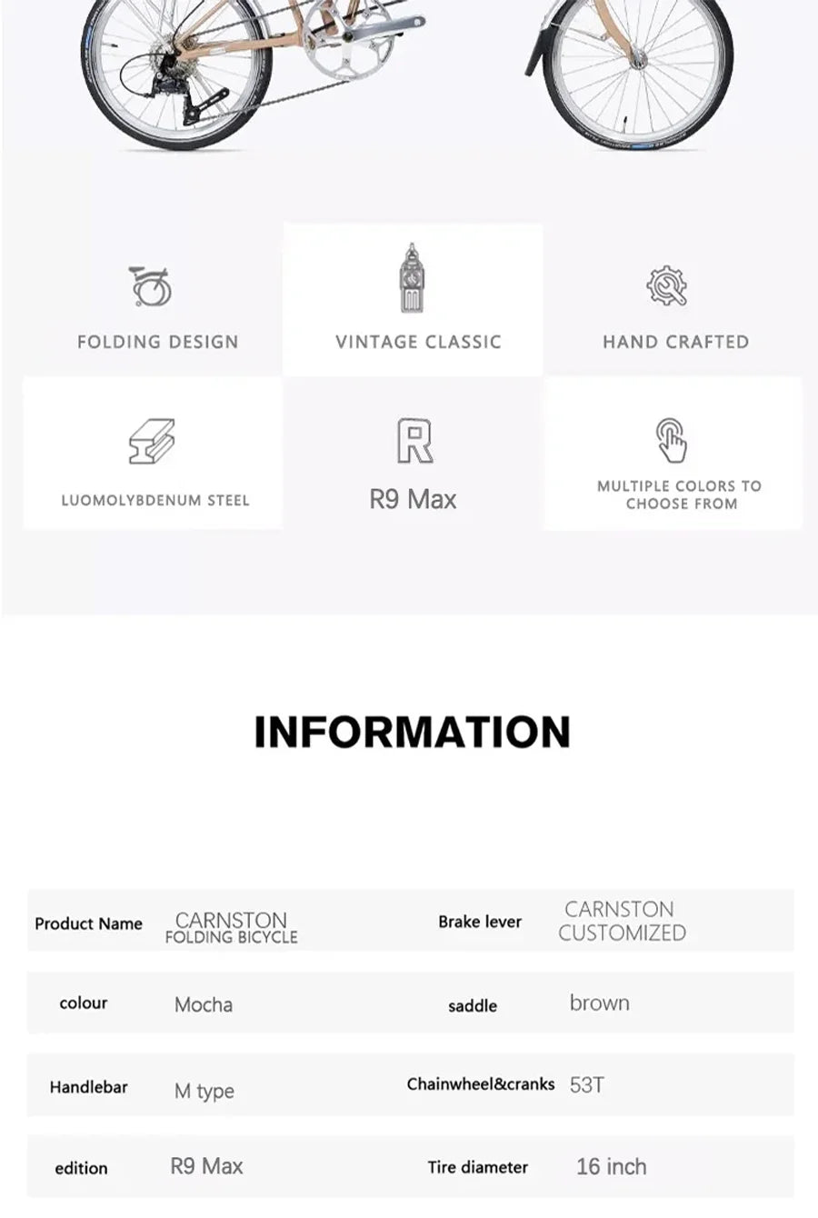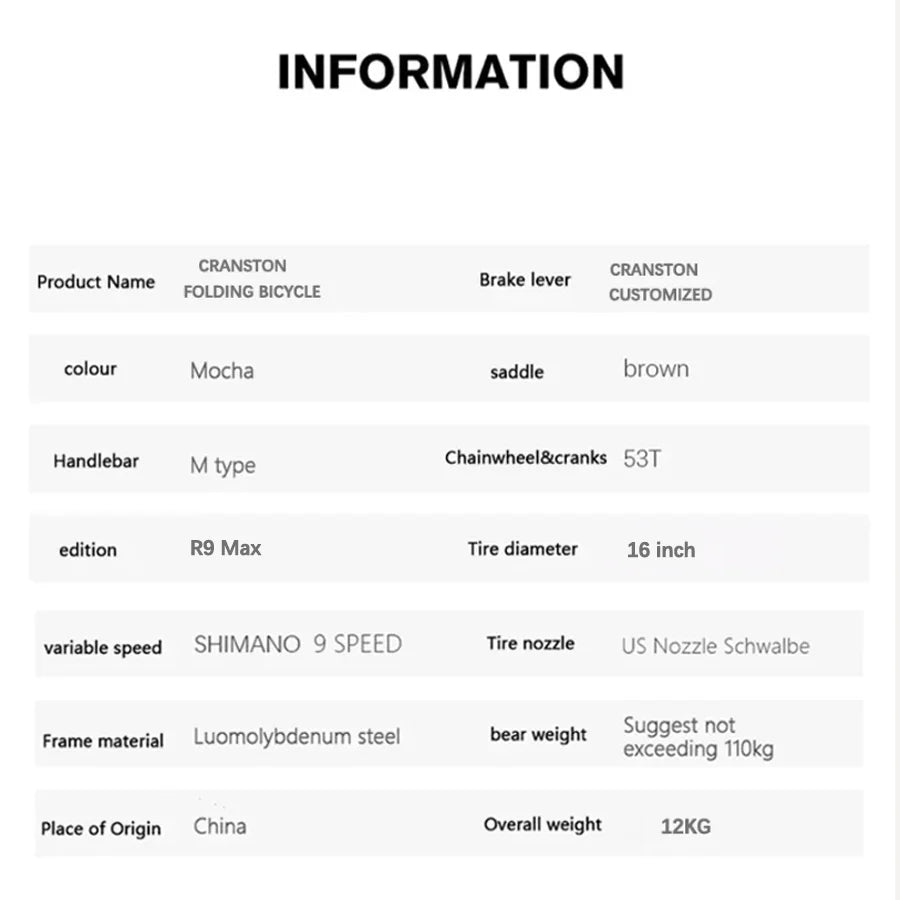 CRANSTON 16Inch 9 Speed Tri Fold Frame Folding Bicycle M handle Chrome Molybdenum Steel Bike Vehicle