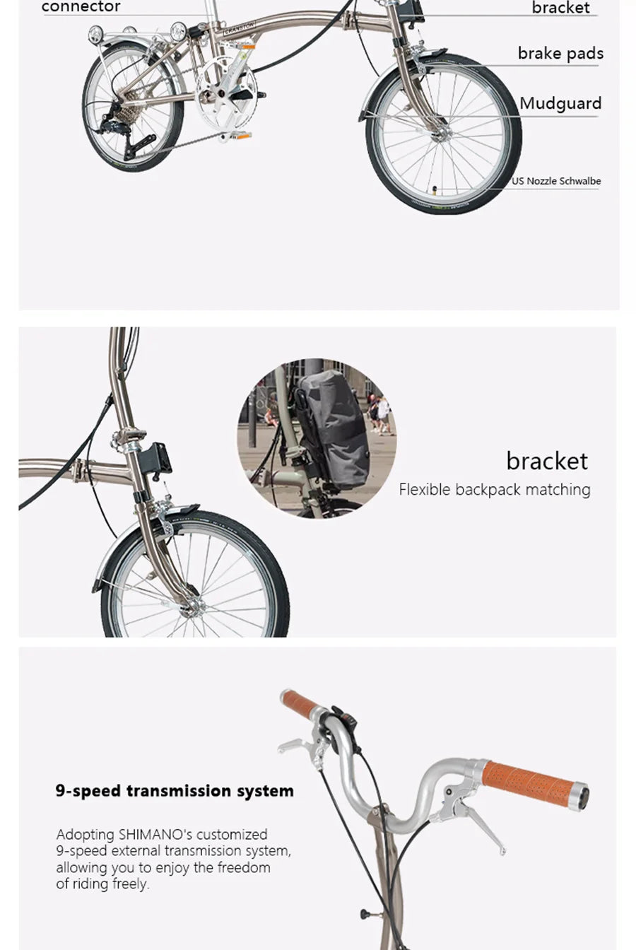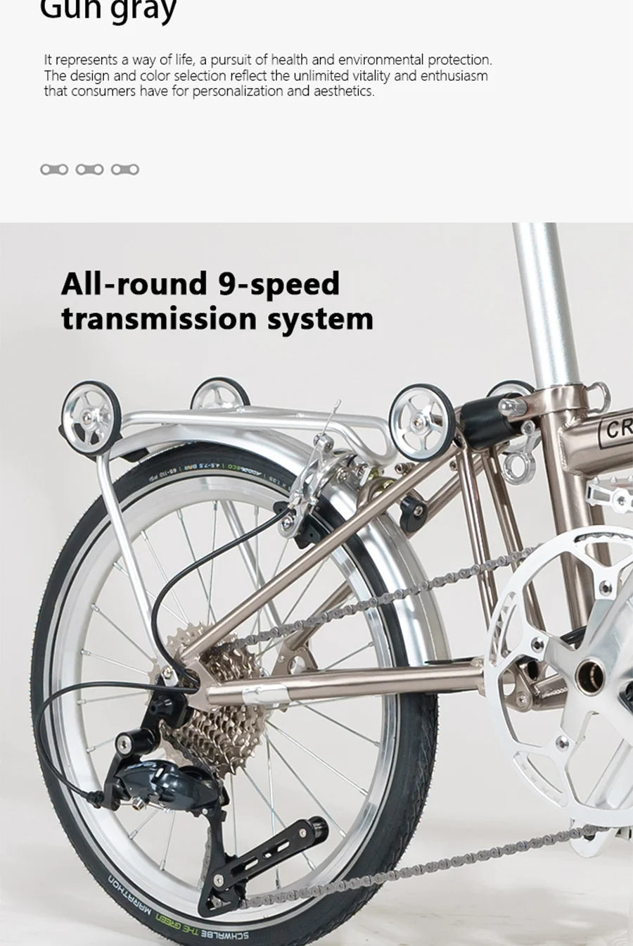 CRANSTON 16inch folding Bike 9speed High Quality Carbo Steel Tri-fold Frame Light Weight M bar Mini Foldable Bicycle
