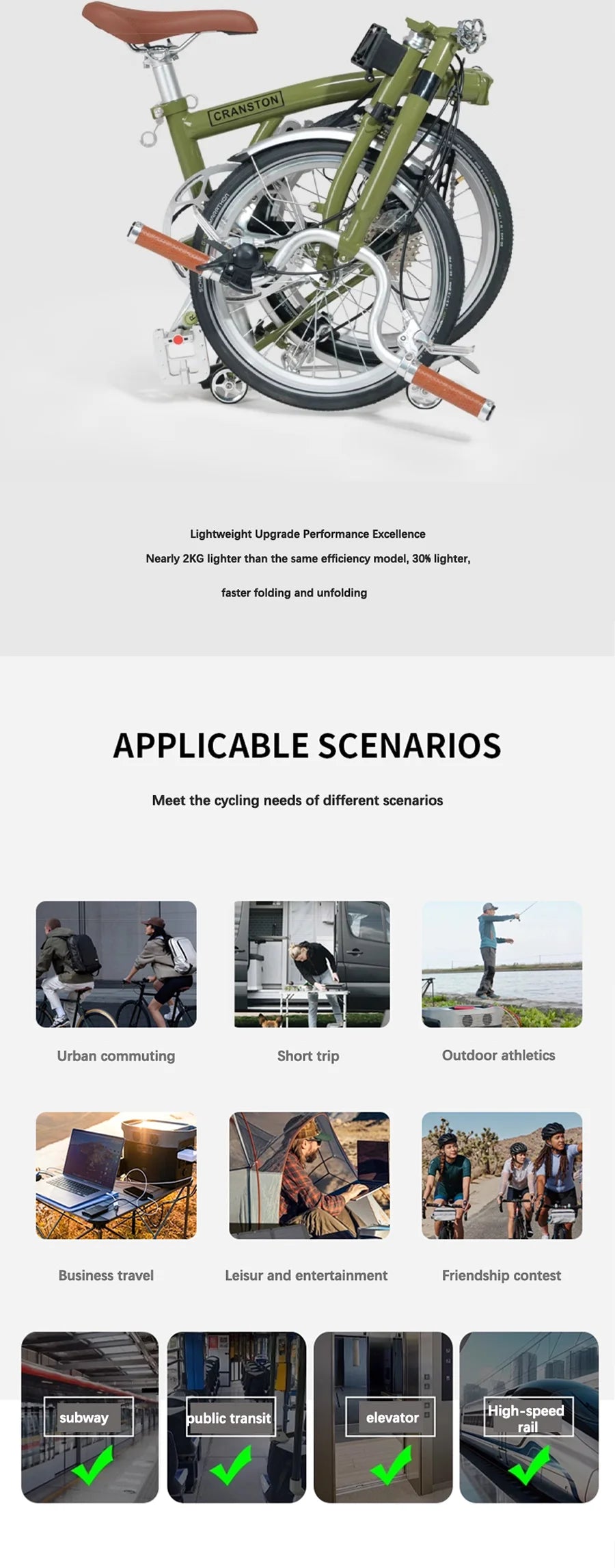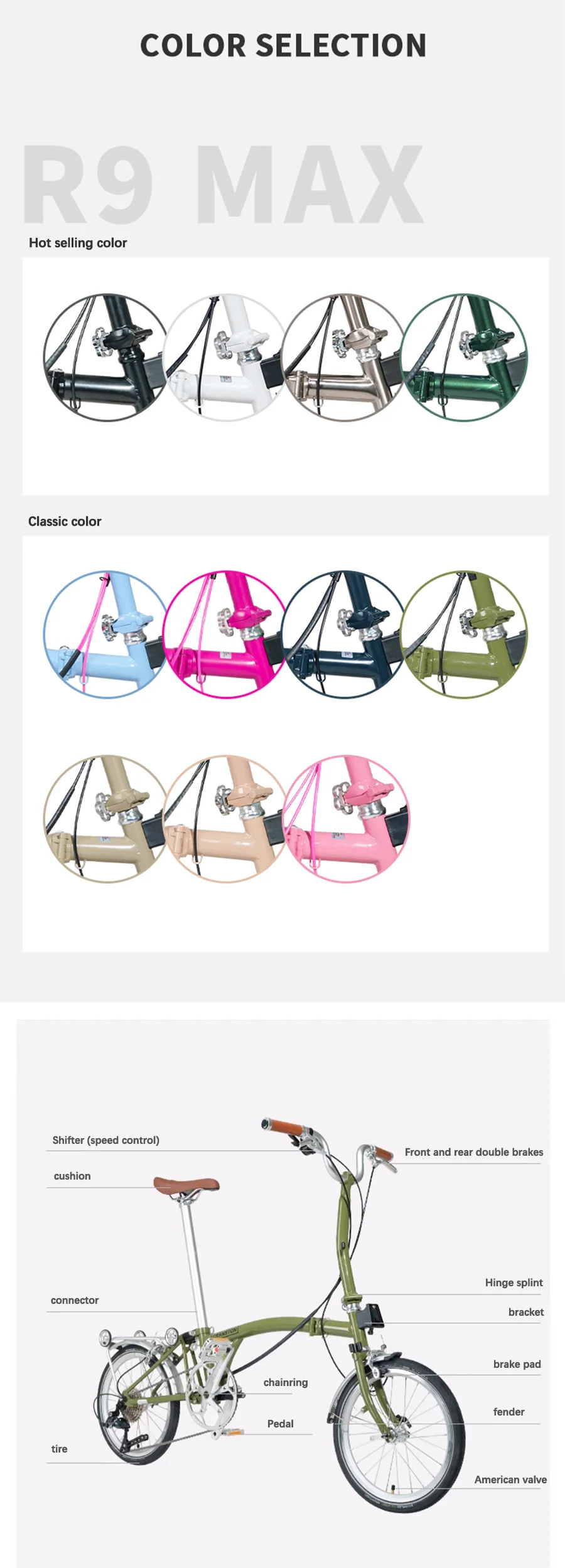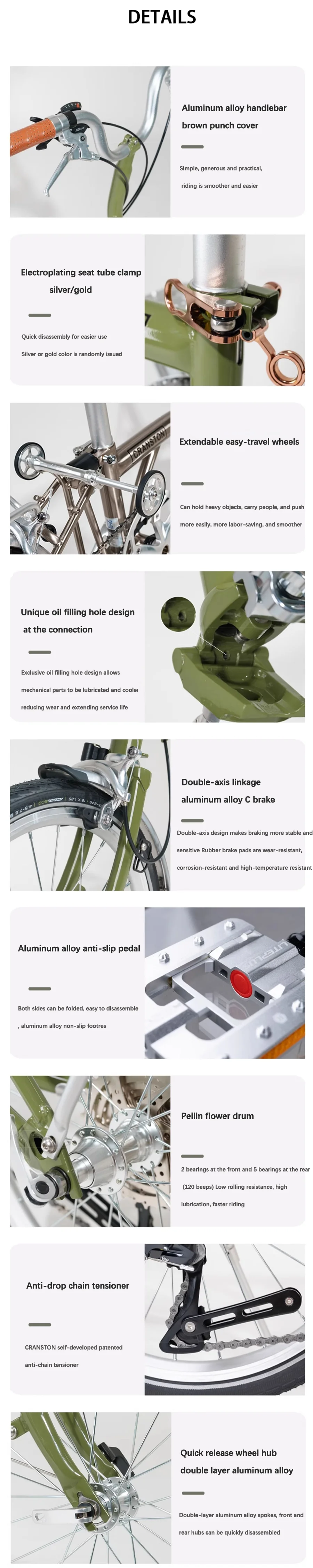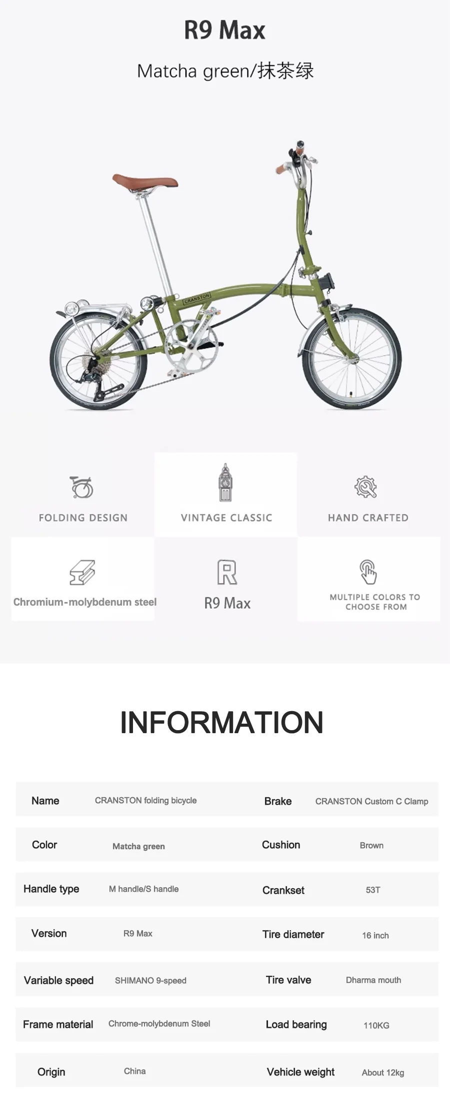 CRANSTON R9 Max Matcha Green Triple Fold 53T Crankset 16 Inch Wheel 9-speed Foldable Bicycle Cr-Mo Frame Mini Folding Bike